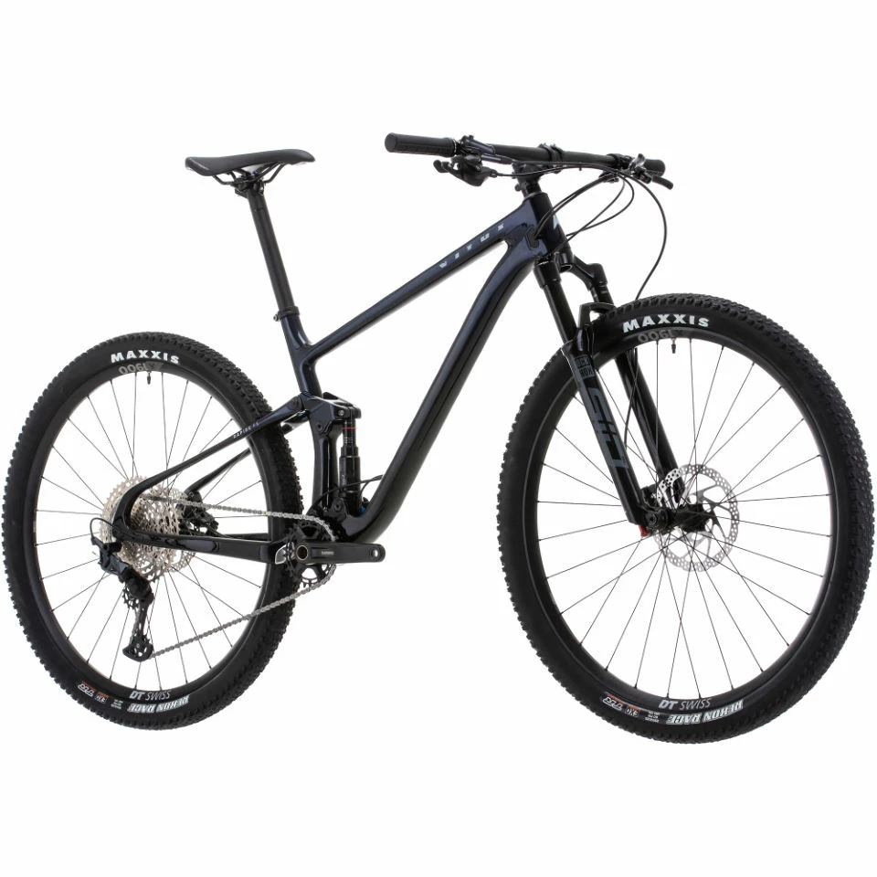 Fast, agile and supportive, the Vitus Rapide FS CRS Mountain Bike is ready for off-road racing. This full-suspension cross country (XC) race bike has a full-carbon frame adorned with RockShox suspension and a Shimano SLX M7100 1×12-Speed groupset.