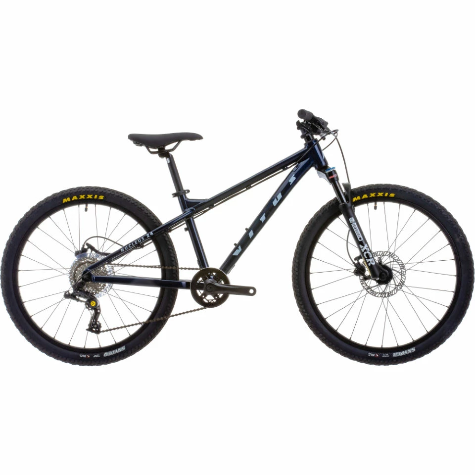 ◌Idéal pour le trail et les bike parks, le vélo semi-rigide Vitus Nucleus 24 pour jeunes est agile, solide et fiable pour une superbe expérience de conduite tout-terrain il dispose d’un cadre en alliage robuste, de fourches à suspension Suntour et d’un groupe 1×8 vitesses.